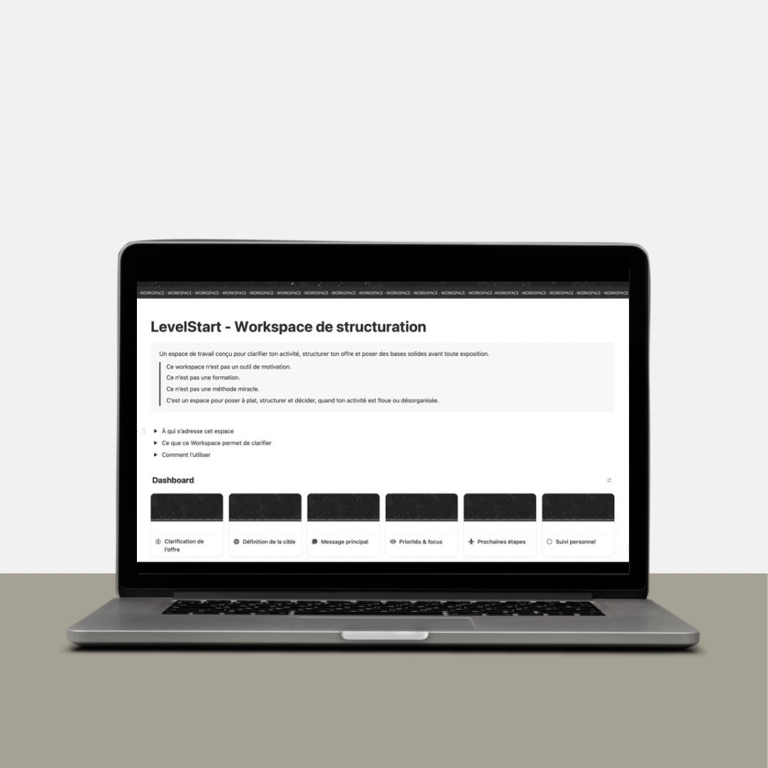 LevelStart est un workspace de structuration conçu pour les femmes entrepreneures et indépendantes qui ont trop d’idées, trop de pistes… et pas assez de clarté.Ce n’est pas un coaching.